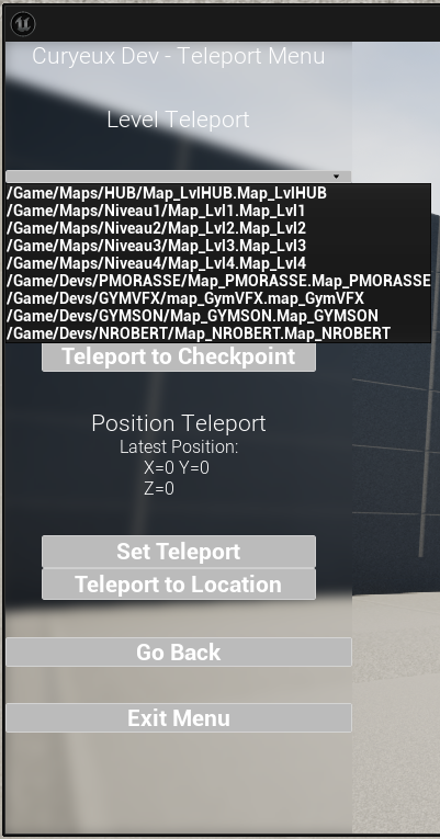 This simple tool was designed to increase workflow and minimize the usage of Unreal’s content browser and Windows File Explorer to do two main tasks: Open levels in editor and delete the save files of the game.