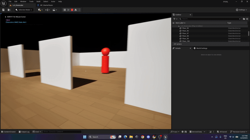 This was the second task I achieved during the span of two weeks. I didn’t know if I wanted fully procedural generated rooms or pre-made rooms. I decided that rooms would allow a better approach for level designers to showcase their skillset and allow a technical workflow to be created to make the generation simpler.