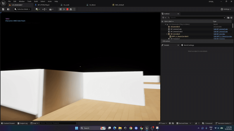 I started the development of the enemies with the introduction of navigation meshes to the actual room generator. This was a difficult task because of the nature of the room generation itself. I didn’t want enemies to attempt movement towards empty spaces. After a few concepts, I figured out the required settings for the navigation mesh.