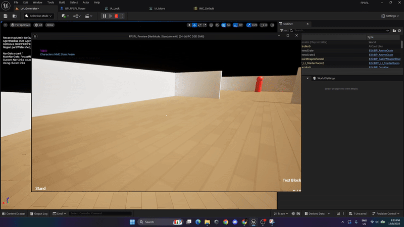 The current design for the player character is heavily inspired by the current FPS games. This includes functionalities such as omni-directional movement, crouching, proning, stamina for doing specific actions, and many more.